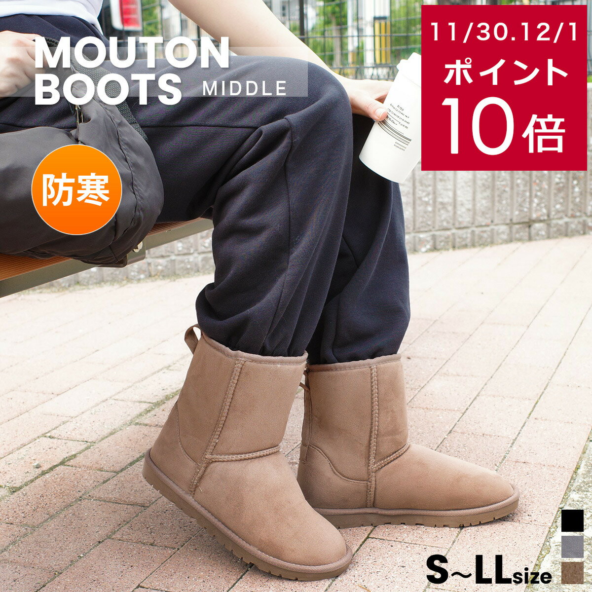 BAYFLOW [軽量!!抗菌消臭・撥水加工付き]フェイクムートンブーツ ベイフロー シューズ・靴 ブー... [詳細 6,490 円 |